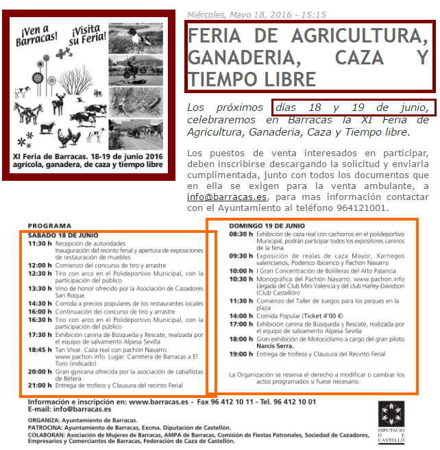 Tendrá lugar los días 18 y 19 de junio, con exposiciones de realas, concursos de tiro y arrastre, exhibiciones de tiro con arco y caninas, etc...