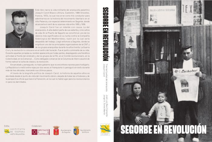 El próximo jueves 27 de octubre, a las 19:00 horas, en el Salón de plenos del Ayuntamiento de Altura, tendrá lugar la presentación del libro «Segorbe en revolución. Tras las huellas del anarquista Joaquín Carot», de José Luis Bea Clemente y Jorge A. Torres Martín.