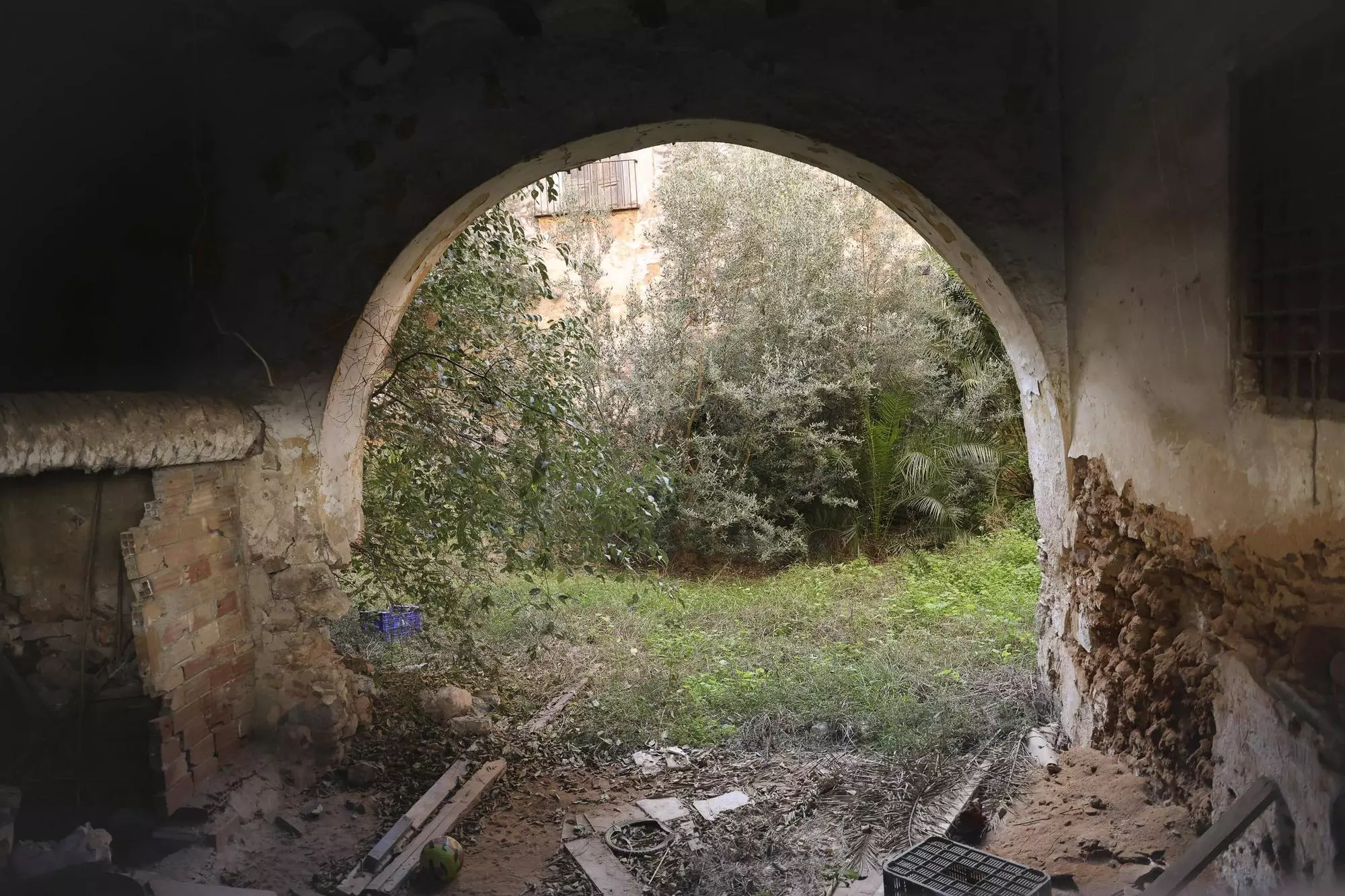 El patio central del Palau en el que se albergaban las cuadras, la entrada del Huerto del Palacio y las dos viviendas para el personal de servicio podrá convertirse en el espacio de unión que dará paso desde el centro histórico de Quartell a la nueva urbanización.
